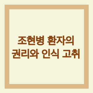 조현병 환자의 권리를 옹호하는 것은 매우 중요합니다. 이들은 정신질환이라는 이유로 기본적인 인권과 자유를 침해받는 경우가 많기 때문입니다. 이제는 이들의 권리를 보장하고 사회적 차별을 해소하기 위한 노력이 필요합니다.